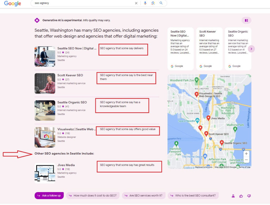 Andy Simpson shared a local search. The query was “personal injury lawyer near me.” The summary of the result came from a lawyer’s site but that firm was not actually mentioned in the SGE recommendations.