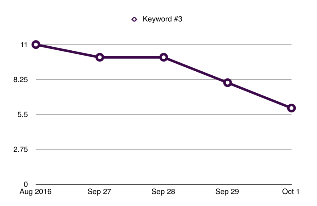 Over the next few days, I looked at a large number of sites for which I felt that they were under Penguin suppression. Instead of just looking at traffic patterns for these sites, I took a good look at a number of keywords to see where they were ranking. For each site I chose a few keywords that were important to that site. I used data from Semrush.com to determine what their rankings were for these keywords in August of 2016 (i.e. Prior to Penguin launching) and then I personally gathered ranking data each day. The data was gathered by using a browser in which I had never clicked on a result. I did the searches in the country for which they did business. In other words, if a site did business in the US I searched on Google.com. If they did business in the UK I searched on google.co.uk. I did not click on any results. I was not signed in to Google.