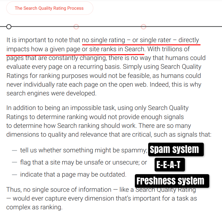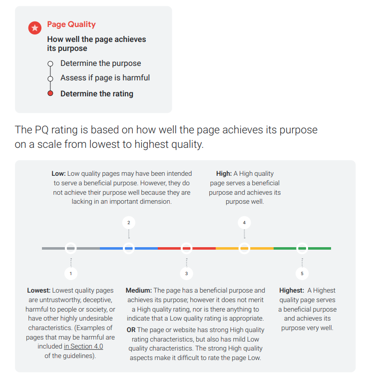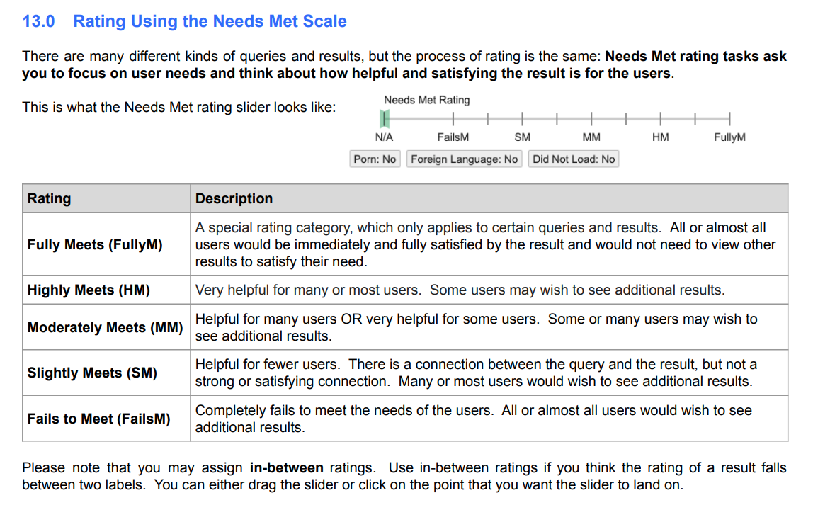 They also rate individual pages on scales for qualities like expertise, trustworthiness, and meeting the user's needs.