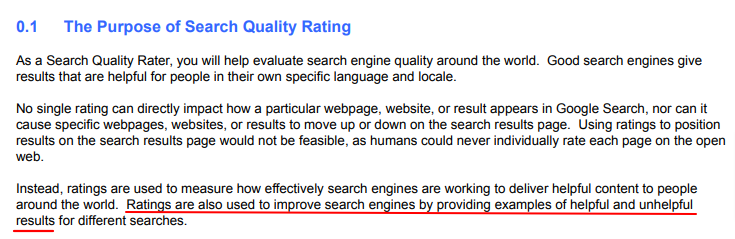 In July of 2022 the QRG changed. In addition to saying that ratings from the raters were used to measure how well search engine algorithms are performing, they added, “ratings are also used to improve search engines by providing examples of helpful and unhelpful results for different searches.”