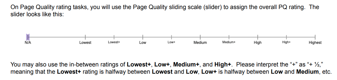 Raters are asked to rate pages on sliding scales as we discussed above.