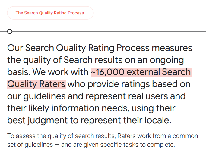 Google employs over 16,000 quality raters worldwide to evaluate search results based on the Quality Rater Guidelines (QRG).